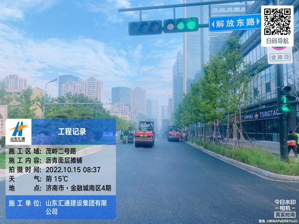 10月15日,濟(jì)南市中央商務(wù)區(qū)瀝青面層一期——茂嶺二號路快車道瀝青開始施工。茂嶺二號路全長1446米,分為東西兩半幅,半幅寬度9.25米,此次攤鋪?zhàn)鳂I(yè)面積約3.4萬平方,計(jì)劃SMA-13瀝青馬蹄脂碎混合料用量3264噸,現(xiàn)場機(jī)械使用4臺攤鋪機(jī),4臺大壓路機(jī),3臺小壓路機(jī)聯(lián)合作業(yè)。