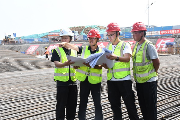 隨時進行施工進度策劃。原計劃夜間澆筑5000立方混凝土,但關(guān)注到周末兩天持續(xù)高溫,考慮防暑降溫和安全生產(chǎn)要求,他成果斷與相關(guān)方溝通交流,協(xié)調(diào)施工計劃,避開高溫施工,確保施工安全。