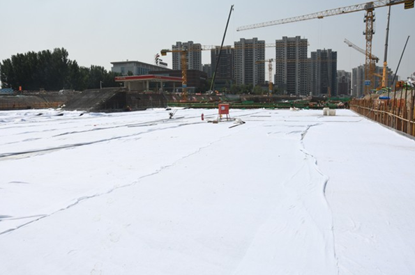 他力薦新工藝應(yīng)用,對于大體積混凝土的養(yǎng)護工作,初期養(yǎng)護內(nèi)外溫差大,不宜灑水養(yǎng)護。項目部采用新式水能量膜養(yǎng)護+土工布保溫的方式,同時布置測溫點實時監(jiān)控砼內(nèi)外溫度,使養(yǎng)護工作得以量化,用數(shù)據(jù)說話,及時分析砼內(nèi)外偏差原因,適度調(diào)整,確保主體混凝土質(zhì)量。(混凝土節(jié)水保濕養(yǎng)護膜是以新型可控高分子吸水材料為核心,以塑料薄膜為載體,通過設(shè)備加工復(fù)合而成的卷材產(chǎn)品。其中高分子材料可吸收自重200倍的水分,吸水膨脹后變成透明的晶體狀,把液態(tài)水變成固態(tài)水,每平方米養(yǎng)護膜可蓄水0.5KG,成為一個固態(tài)的微型水庫,然后通過毛細(xì)管的作用向混凝土養(yǎng)護面滲透,同時不斷吸收混凝土在水化熱過程中產(chǎn)生的蒸發(fā)水,因此在一個養(yǎng)護期內(nèi)總能保持混凝土表面濕潤。)