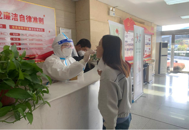 匯通公司嚴格按照集團安排部署,主動承擔社會責任,兩批志愿服務隊隊員先后下沉到社區,協助社區進行管控、信息采集、核酸檢測等工作。我們的“匯通鐵軍”在疫情防控關鍵時期化身“暖心大白”和“紅衣衛士”,因愛而行、沖鋒在前;同樣有一群人,在后方以實際行動助力抗疫,保障一方平安。自11月30日起,隨著解除封控回到基地上班的職工陸續增加,有職工提到自己居住地核酸檢測時間結束的早,很怕耽誤了檢測,無法按時上班。分公司后勤保障組組長馬婕立刻多方打聽,詳細詢問,反復溝通,終于得到華山街道辦事處的回復,可以上門對核酸檢測進行培訓和指導。很快,由小組成員李小嬌、張文鳳和物業公司工作人員組成的臨時核酸檢測點籌備完成。“