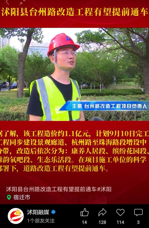 6月8日,沭陽(yáng)縣電視臺(tái)及沭陽(yáng)融媒公眾號(hào)分別以《沭陽(yáng)縣臺(tái)州路改造工程有望提前通車》為題,對(duì)匯通公司承建的沭陽(yáng)縣臺(tái)州路改造工程科學(xué)組織、精準(zhǔn)實(shí)施,加快推進(jìn)項(xiàng)目建設(shè)進(jìn)行專訪報(bào)道。沭陽(yáng)縣臺(tái)州路改造工程(杭州路至珠海路)項(xiàng)目位于宿遷市沭陽(yáng)縣,全長(zhǎng)3442米。自5月10日接到沭陽(yáng)縣住建局指示進(jìn)場(chǎng)以來,在各方領(lǐng)導(dǎo)的幫助和支持下,項(xiàng)目部通過精心策劃,高效實(shí)施,在保證施工安全和質(zhì)量的前提下,將原有合同工期120天壓縮至72天,獲得了業(yè)主的一致好評(píng),得到了市民肯定。工程效果圖筑夢(mèng)路上,我們以精細(xì)化、快速化、人性化施工管理理念,奮勇當(dāng)先,深耕細(xì)作,助力工程建設(shè)再創(chuàng)佳績(jī),向沭陽(yáng)縣人民交上一份滿意的答卷!