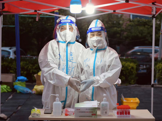 在抗擊疫情的戰(zhàn)線上,有這樣一對(duì)美麗又溫暖的身影,他們彼此牽掛又相互鼓勵(lì),他們心系家人又?jǐn)y手同行,他們是戰(zhàn)疫中的最美夫妻檔,舍小家顧大家,用實(shí)際行動(dòng)書寫著別樣的浪漫。?疫線伉儷雙倍守護(hù)? 陳長(zhǎng)錫是匯通公司的一名項(xiàng)目總工,在4月27日接到防疫志愿服務(wù)任務(wù)后,他積極響應(yīng)義無反顧投身到防疫工作中去。 他所在的南苑社區(qū)共設(shè)11個(gè)采樣點(diǎn),分布范圍廣、居民多、人員分散,面對(duì)全新的工作環(huán)境和任務(wù),他及時(shí)調(diào)整心態(tài)、轉(zhuǎn)變角色,與組長(zhǎng)劉世鵬一起詳細(xì)了解掌握社區(qū)情況,熟悉工作流程。 在雅秀園門崗服務(wù)站點(diǎn),在做好個(gè)人防護(hù)措施后,迅速投入到居民核酸檢測(cè)、社區(qū)消毒消殺、運(yùn)送防疫檢測(cè)物資等工作中。此站點(diǎn)居民