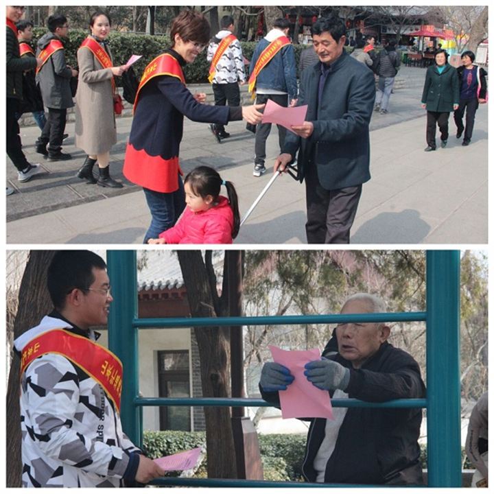 陽春三月,萬物復蘇,三月是一個春意盎然的時節,更是一個講文明、樹新風,讓雷鋒精神遍布華夏大地的季節。17名青年志愿者來到濟南大明湖風景名勝區,拿起掃帚、垃圾夾、垃圾袋等工具,自發投入到清掃隊伍中,開始了今天的“戰斗”。他們有的蹲下來撿起地上亂扔的煙頭,有的把手伸進灌木叢清理黏貼的口香糖,有的手拿“共建綠色家園 共享一片藍天”倡議書分發給游園的市民,呼吁廣大市民從我做起,讓文明之風吹遍泉城大地?;顒舆^程中,志愿者們分工有序,配合默契,干勁十足,豆大的汗珠從臉頰滑落也渾然不知,過往游客紛紛豎起大拇指,為他們點贊。