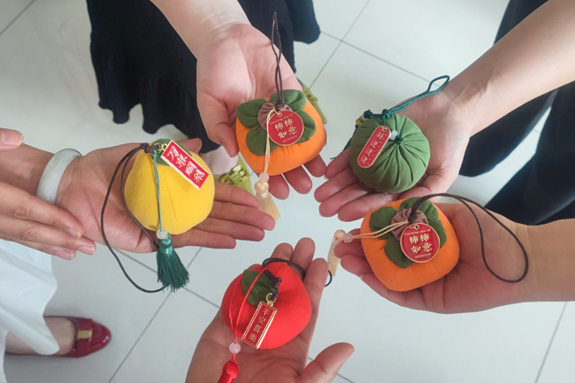 民間素來有諺語“戴個香草袋,不怕五蟲害”。每逢端午節來臨,除了包粽子還有一個縫制佩戴艾葉香包的習俗,驅瘟避疫、強身健體,足以看出人們對美好生活的向往之情,因此,匯通集團分會還貼心的為大家準備了寓意美好的艾草香囊,有萬事順梨、好運連連、柿柿如意、平安喜樂等,香囊的艾味濃郁,顏值頗高,讓大家愛不釋手,連連稱贊。