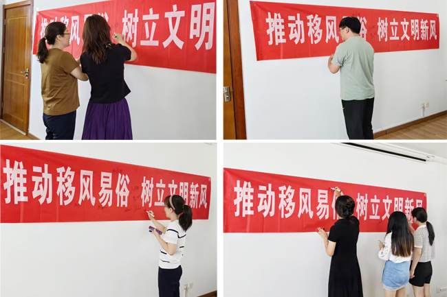 活動現(xiàn)場,大家踴躍發(fā)言,就文明婚俗、現(xiàn)代婚慶等話題進行溝通交流。交流過程中,職工們講述家鄉(xiāng)的婚禮風俗,發(fā)表不同觀點,號召摒棄大操大辦、低俗鬧婚等陳規(guī)陋習,積極提倡婚事新辦、簡辦的婚戀觀,贏得了在場職工的認可和稱贊。同時,工作人員為職工發(fā)放《破處婚俗陋習樹立文明新風倡議書》,大家紛紛在宣傳條幅上簽名。